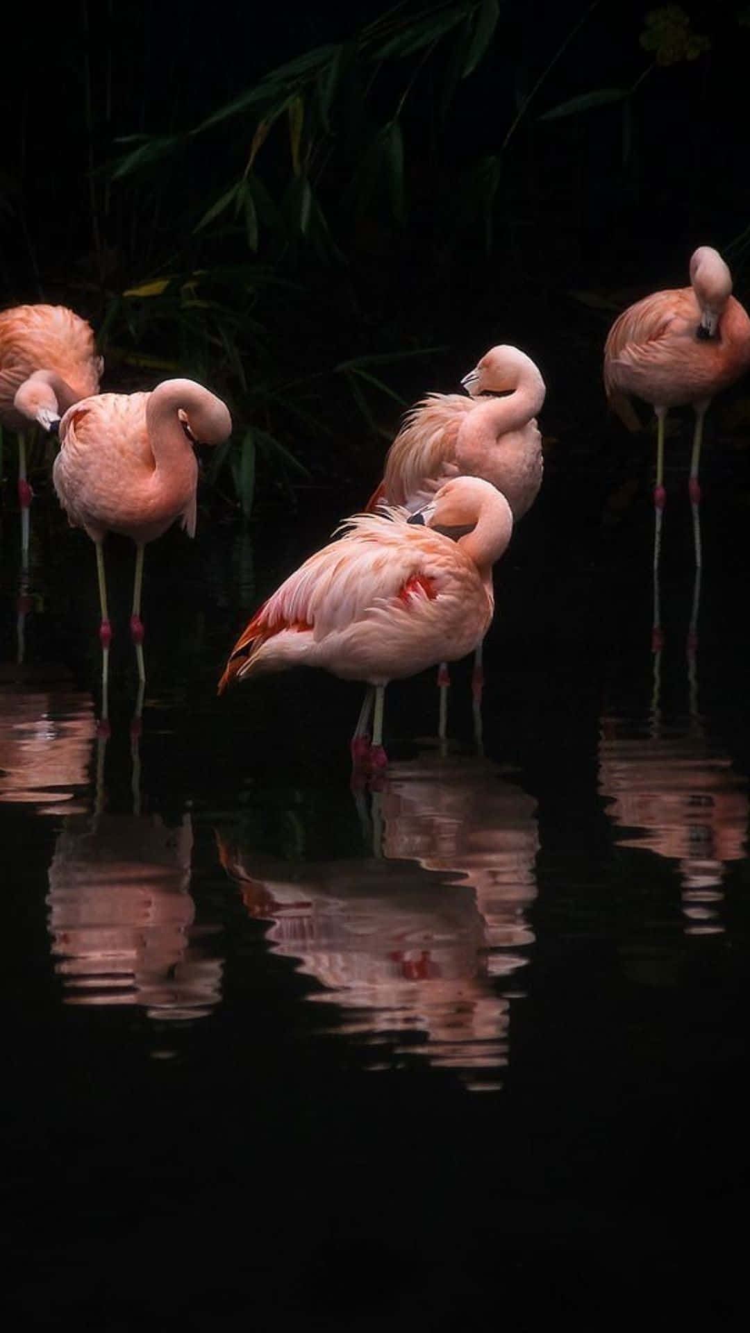 A Group Of Flamingos Are Standing In A Pond Wallpaper -