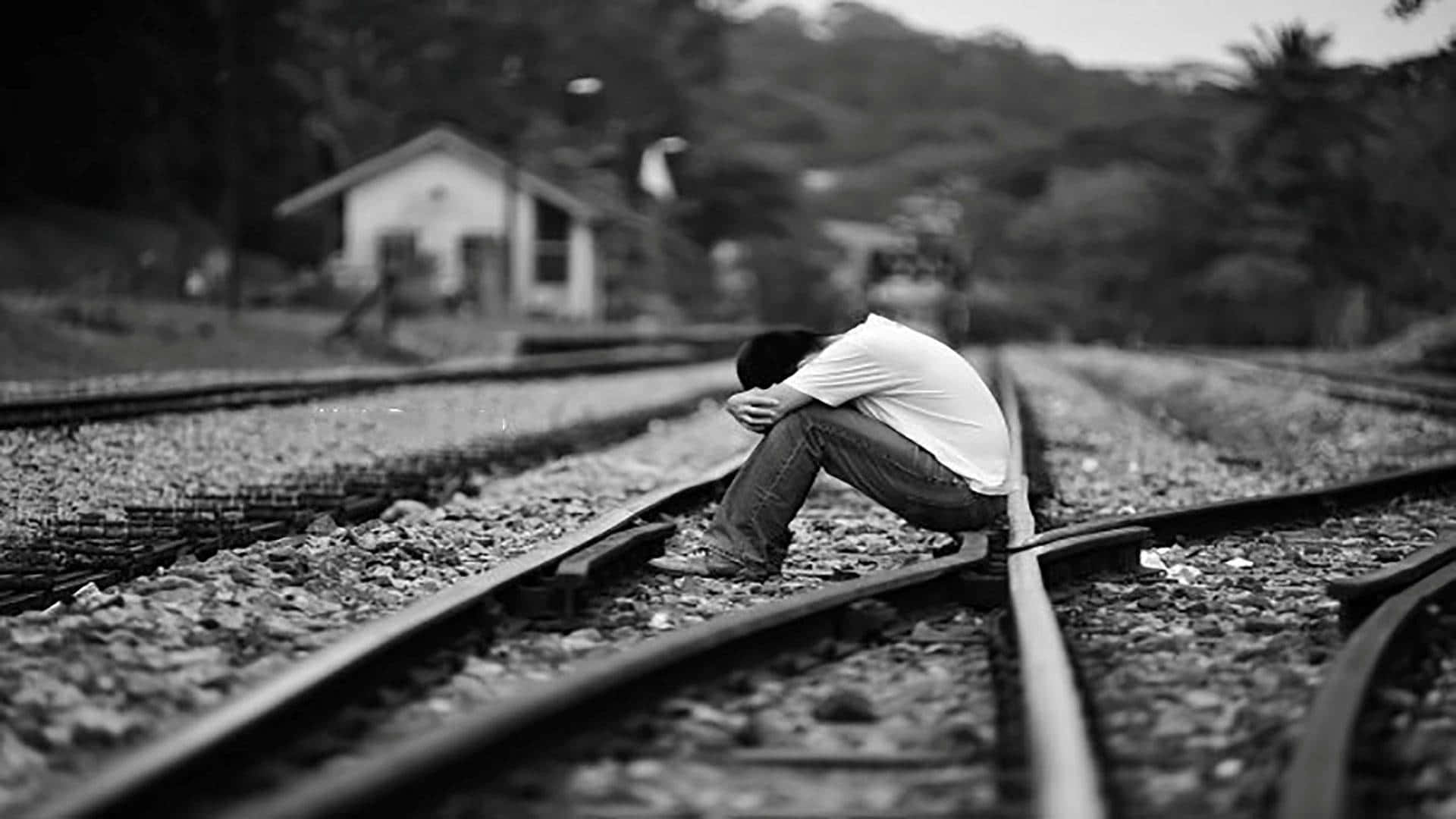 Cool Sad Boy On Train Tracks Wallpaper