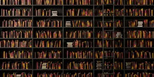 Man Selecting Book From Large Bookshelf Wallpaper -