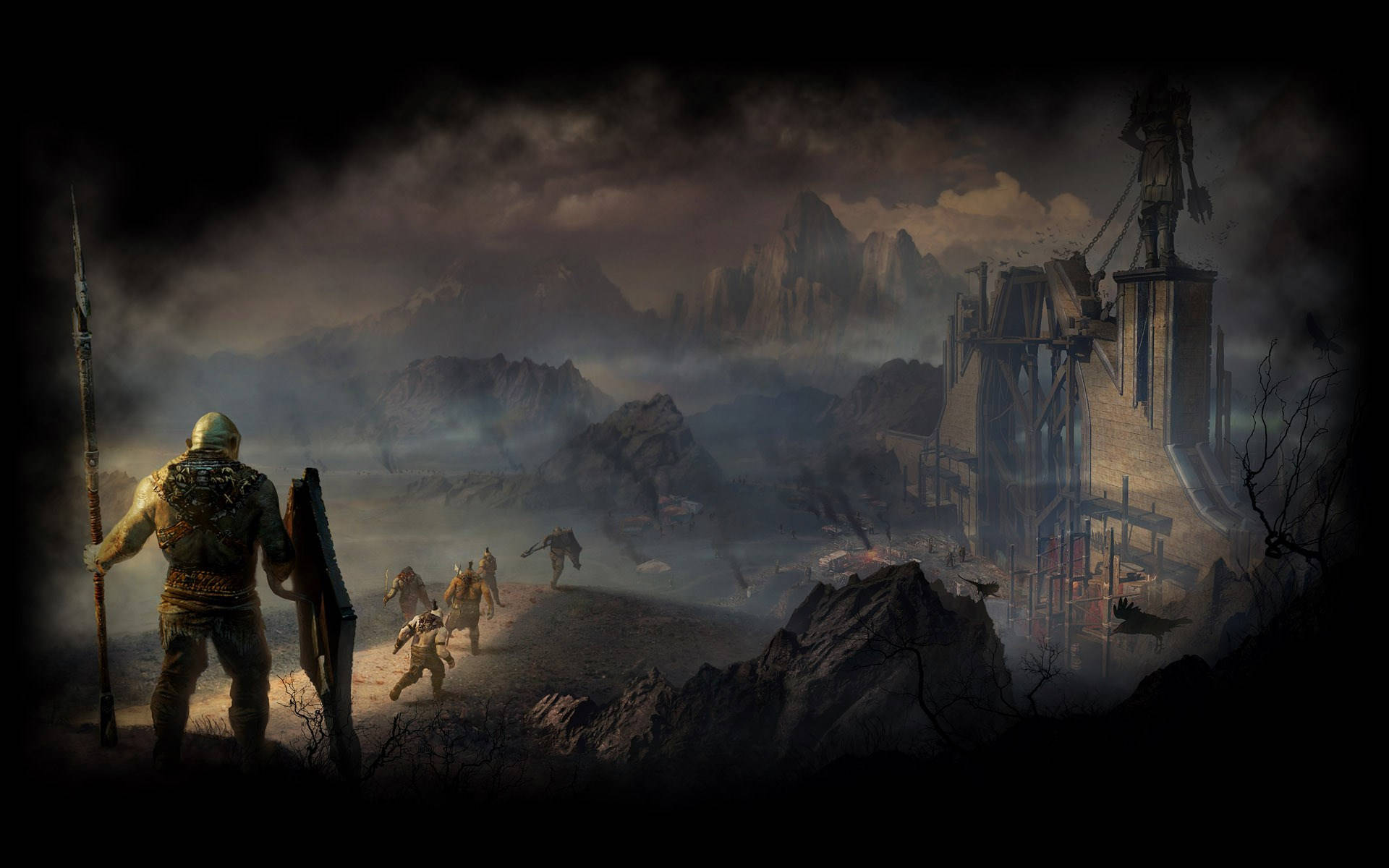 Middle Earth Shadow Of Mordor Village Setting Wallpaper -