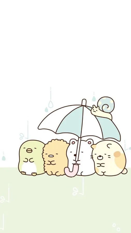 Cute Animals Sharing Umbrella Wallpaper