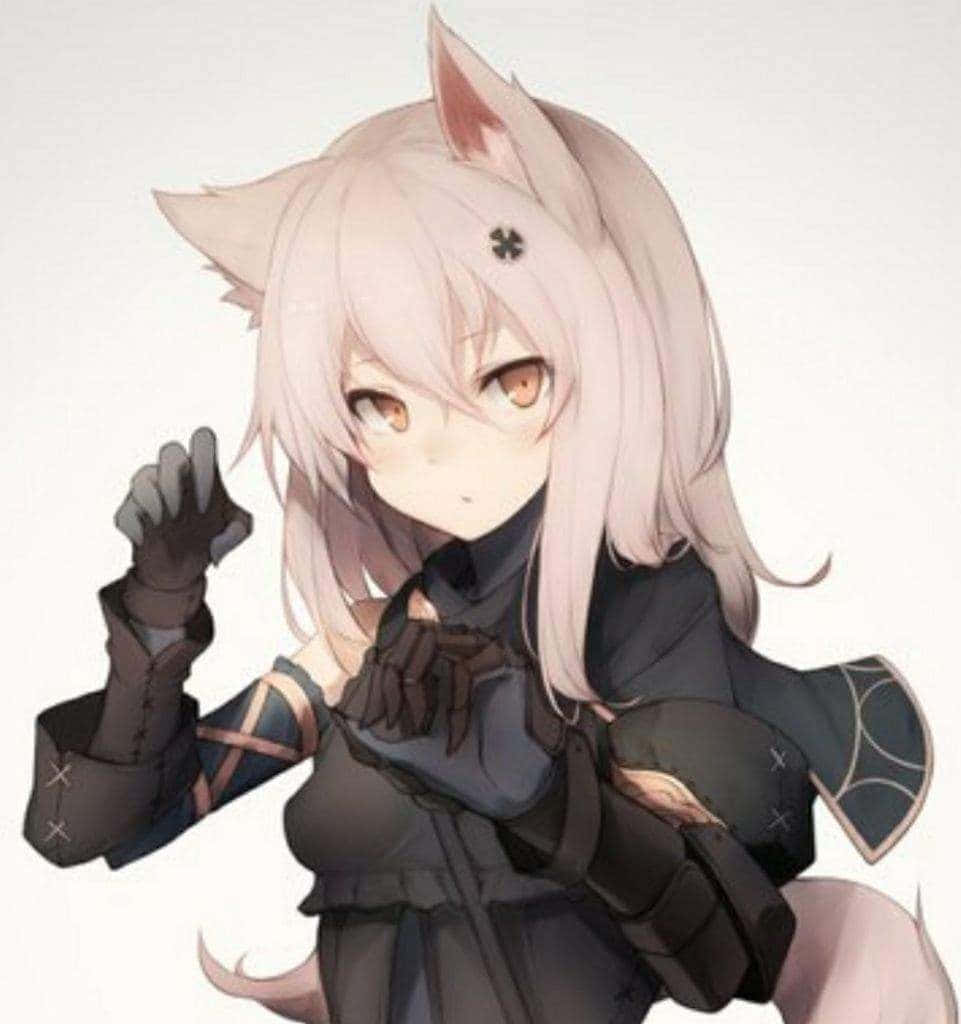 A Cute Anime Wolf Girl Striking A Playful Pose Wallpaper -