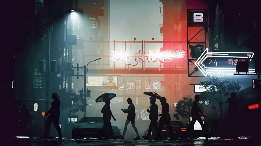 Related Cyberpunk 2560×1440 People Silhouettes Wallpaper