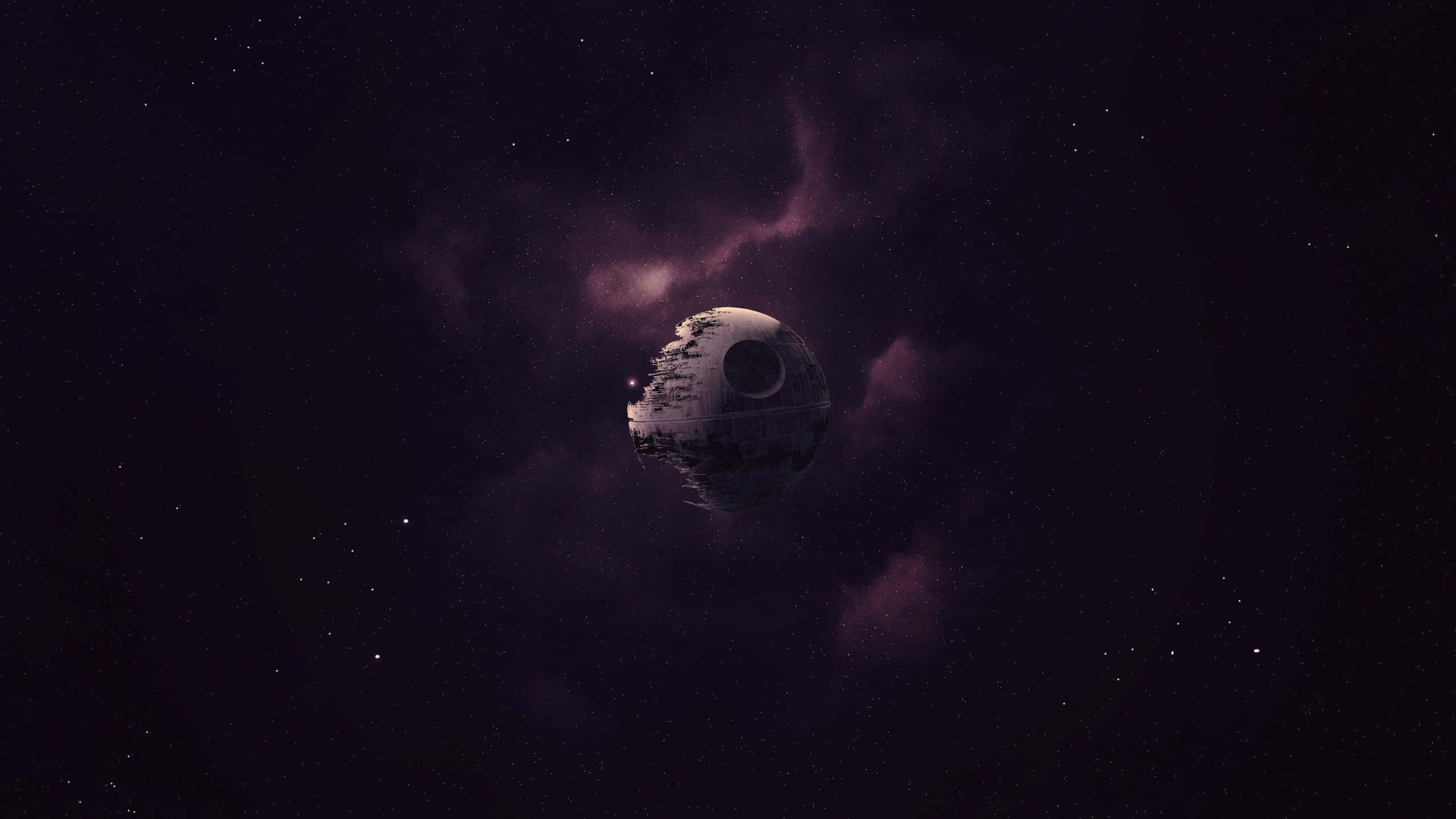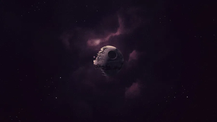 Death Star Rising Over Silhouetted Landscape Wallpaper -