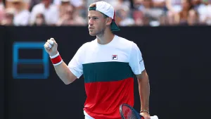 Victorious Moment: Diego Schwartzman Celebrating A Win Wallpaper -