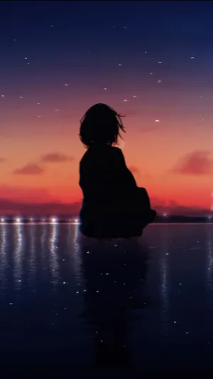Enjoy The Tranquility Of A Virtual Anime Sunset Wallpaper -