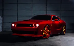 The Rear End Of A Red Dodge Challenger Wallpaper -