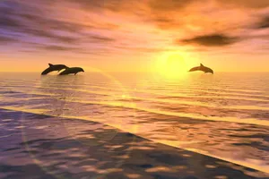 Three Dolphin Mammals Against Sunset Wallpaper -