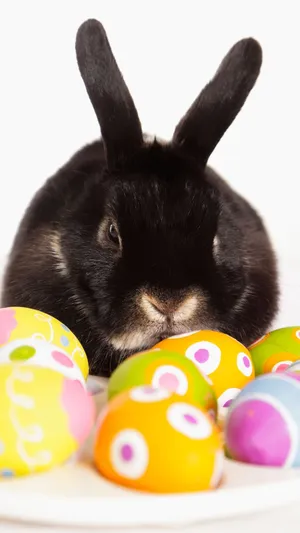 Caption: Delightful Easter Bunny With Colorful Eggs Wallpaper -