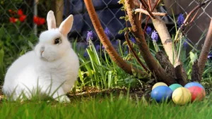 A Cute Easter Bunny Visiting A Garden Wallpaper -