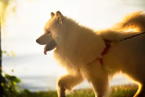 "a Japanese Spitz Dog Playing With A Tennis Ball In Japan." Wallpaper -