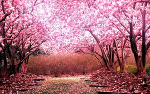 A Pink Path With Cherry Blossoms In The Background Wallpaper -