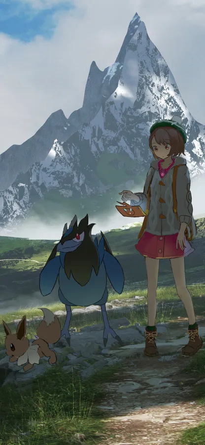 Related Eeveeand Traineron Mountain Path Wallpaper