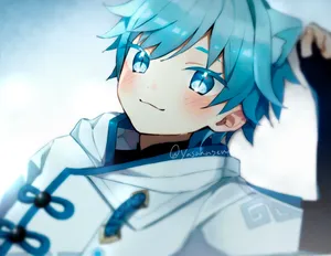 A Blue Haired Anime Character With Blue Eyes Wallpaper -