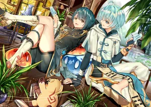 Two Anime Girls Sitting On A Couch Wallpaper -