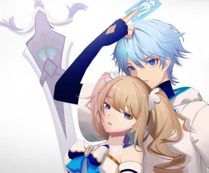 Two Anime Characters Standing Next To Each Other Wallpaper -