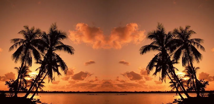 Scenic Desktop Palm Trees On A Sunset Wallpaper -