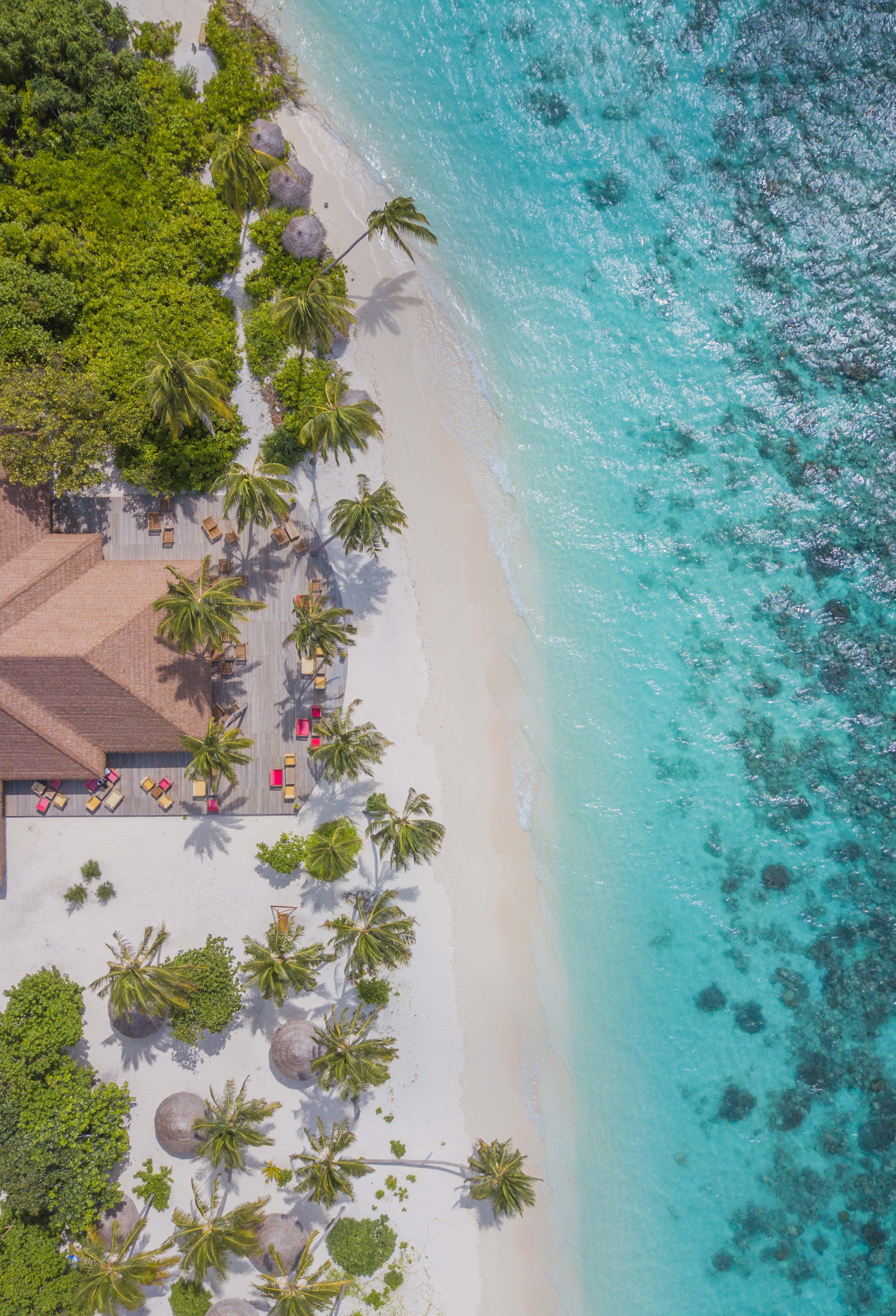 Picture Blue Waters Meet White Sands Along The Ocean Beach Wallpaper -