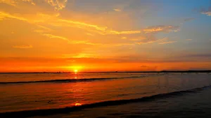 Enjoy The Tranquility Of The Ocean As The Sun Sets Wallpaper