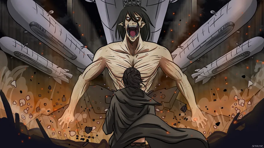 Eren Yeager Battles Giant Titans To Protect The Walls Of His Home Wallpaper