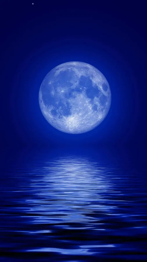 A Full Moon Is Seen Over The Ocean At Night Wallpaper -