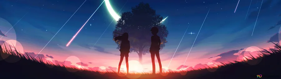 Anime Characters Enjoying A Beautiful Sunset. Wallpaper -