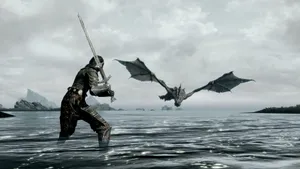 Skyrim Huge Dragon Desktop Wallpaper -