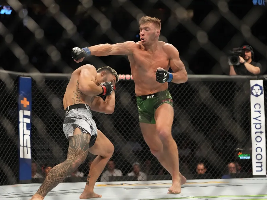Dricus Du Plessis Kicking Brad Tavares Wallpaper -