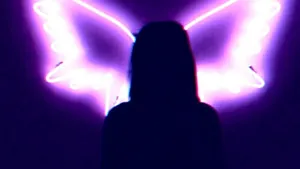 A Purple Desktop With A Computer Screen And A Butterfly Wallpaper -