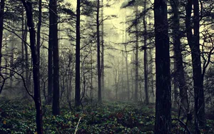 Mysterious And Foggy Forest Desktop Wallpaper -