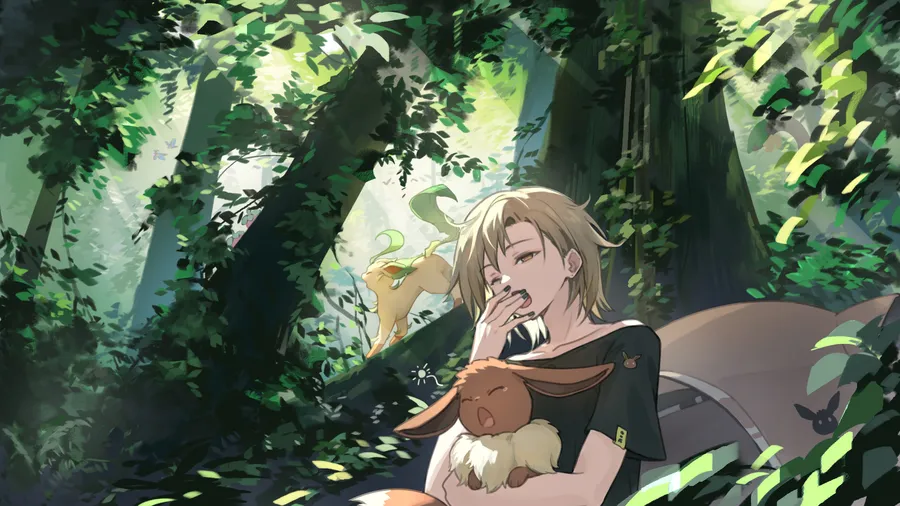 Related Forest Napwith Eeveeand Trainer Wallpaper
