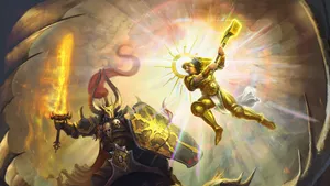 "a Fearsome Battle Amongst Gods And Men." Wallpaper -