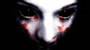 A Woman With A Scary Face Is Standing In The Dark Wallpaper -