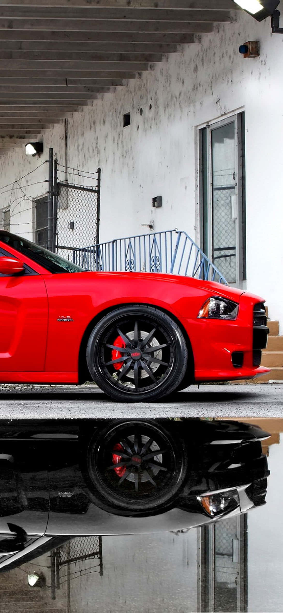 Check Out The Stunning Red Dodge Charger On Your Iphone Wallpaper -
