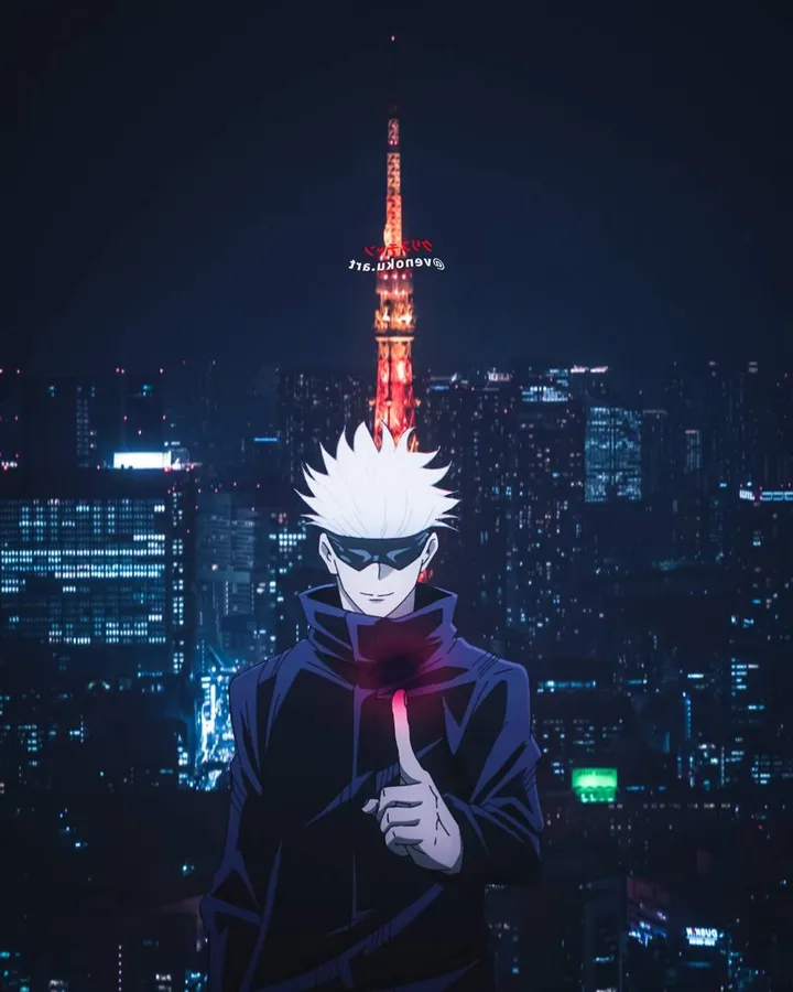 Gojo Sataru With Tokyo Tower Background -