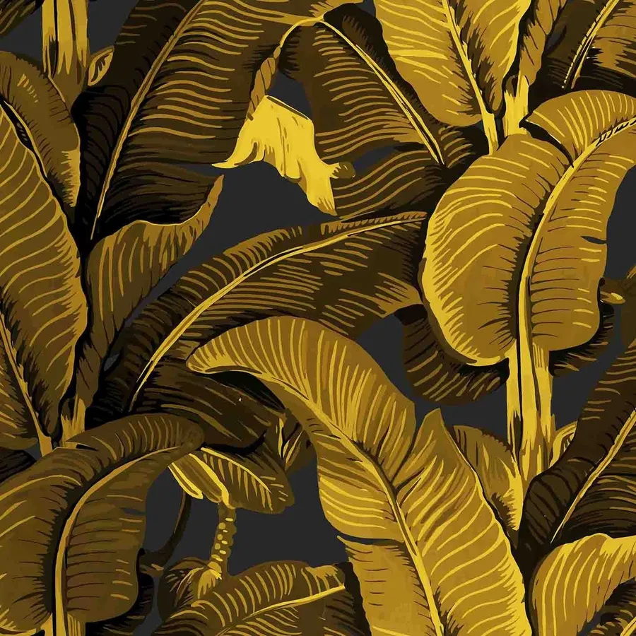 Gold Leaf Banana Tree Pattern Wallpaper -