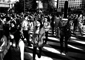 A Black And White Photo Of A Crowd Of People Wallpaper -