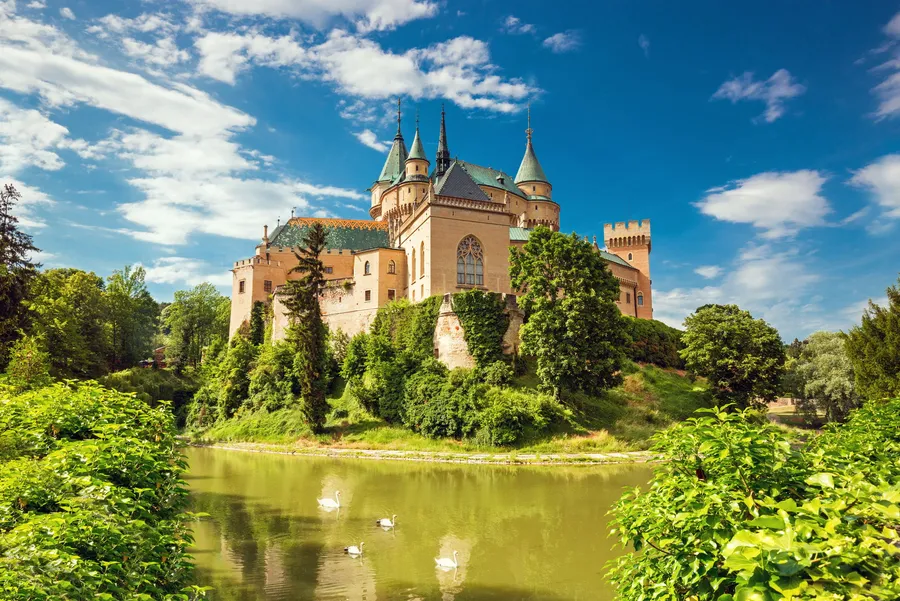 Majestic Bojnice Castle Amidst Verdant Greenery Wallpaper -