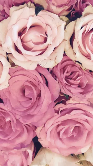 A Row Of Pink And White Roses On A White Background Wallpaper -