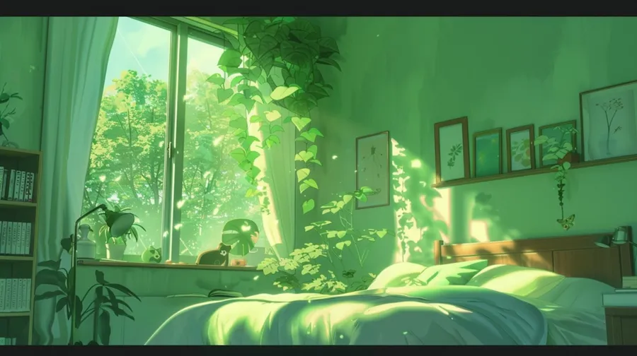 Related Green Aesthetic Bedroom Sunlight Wallpaper