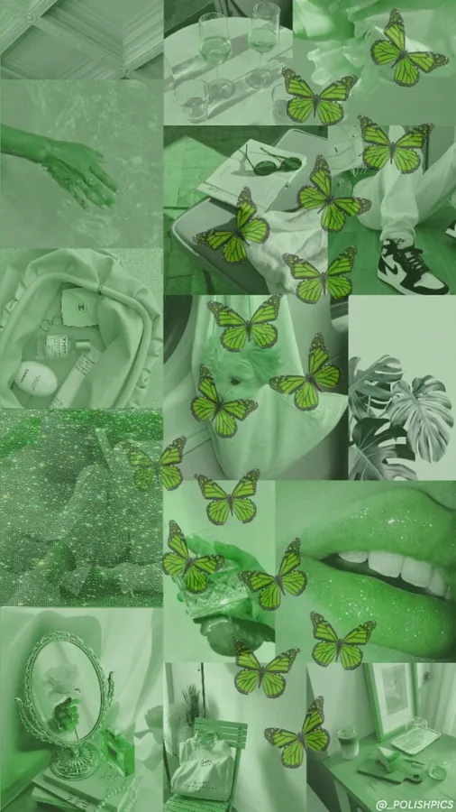 Green Aesthetic Collagewith Butterflies Wallpaper -