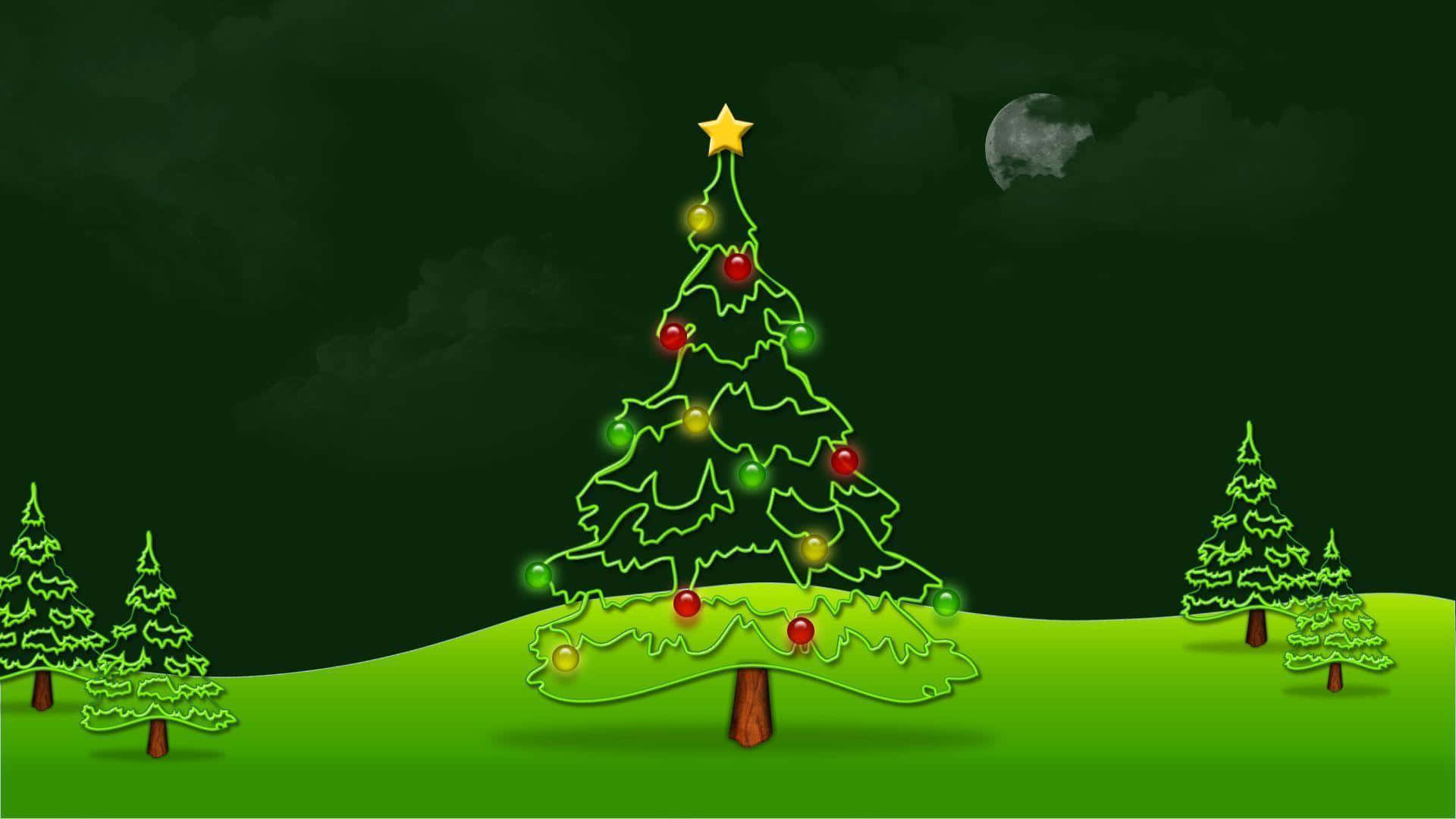 A Green Christmas Tree On A Dark Background Wallpaper -