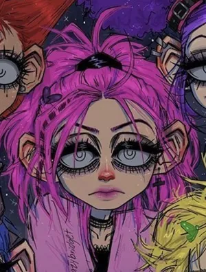 Grunge Cartoon Long Hair Small Pupils Wallpaper -