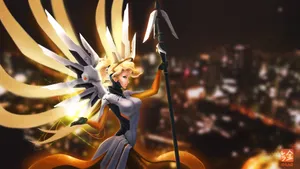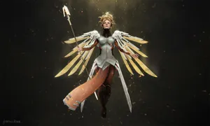 Support The Team With Mercy's Powerful Healing Capabilities In Overwatch. Wallpaper -