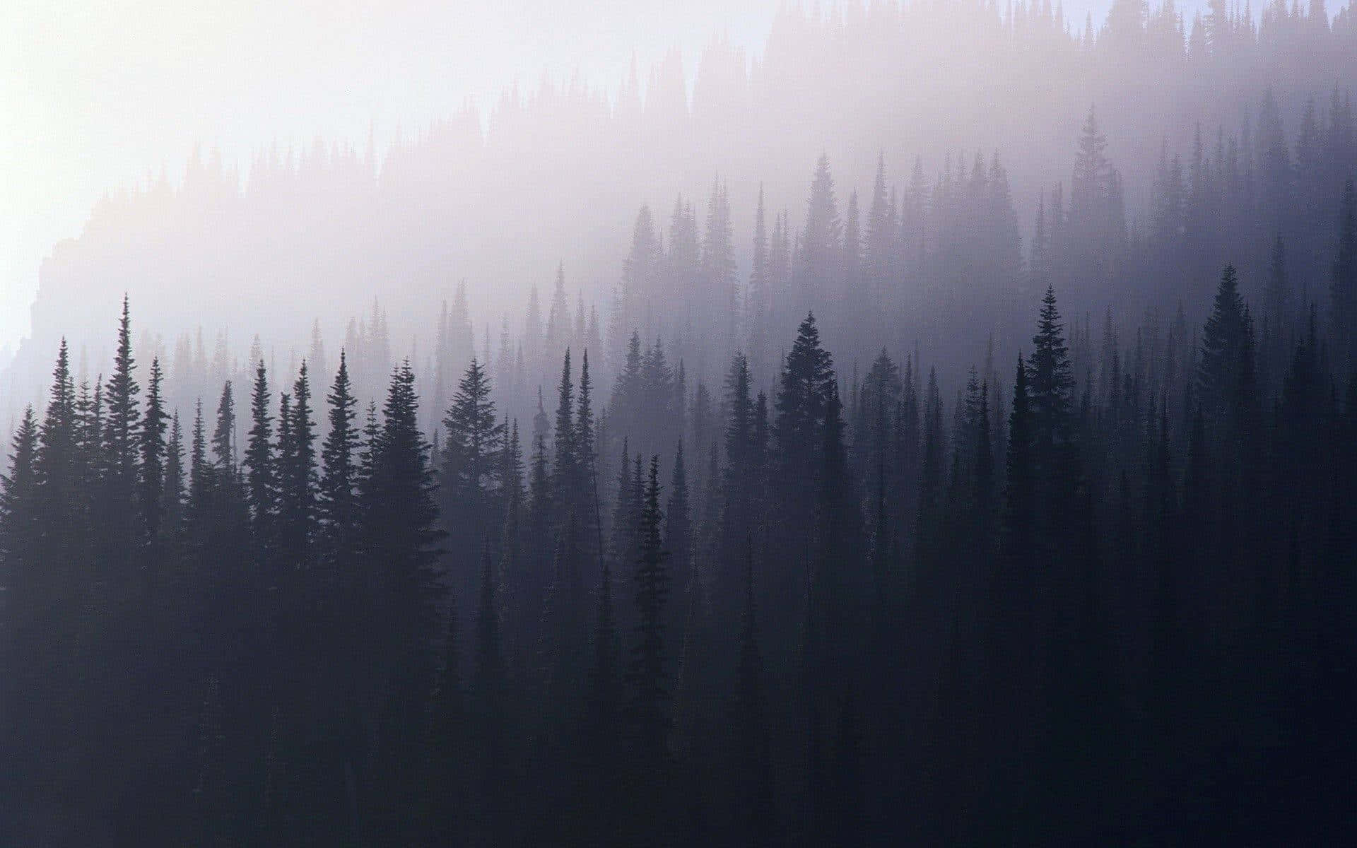 Foggy Aesthetic Forest Trees In Mountain Wallpaper -