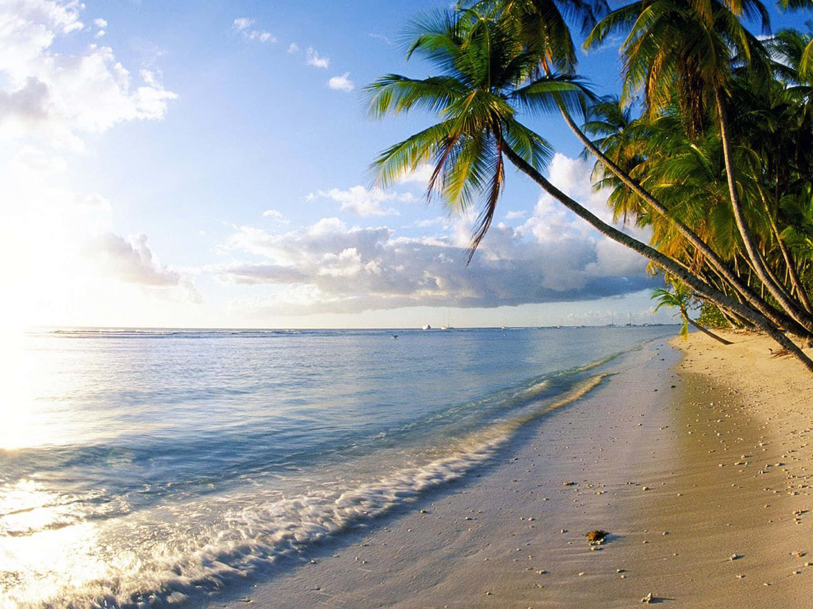 A Beach With Palm Trees Wallpaper -
