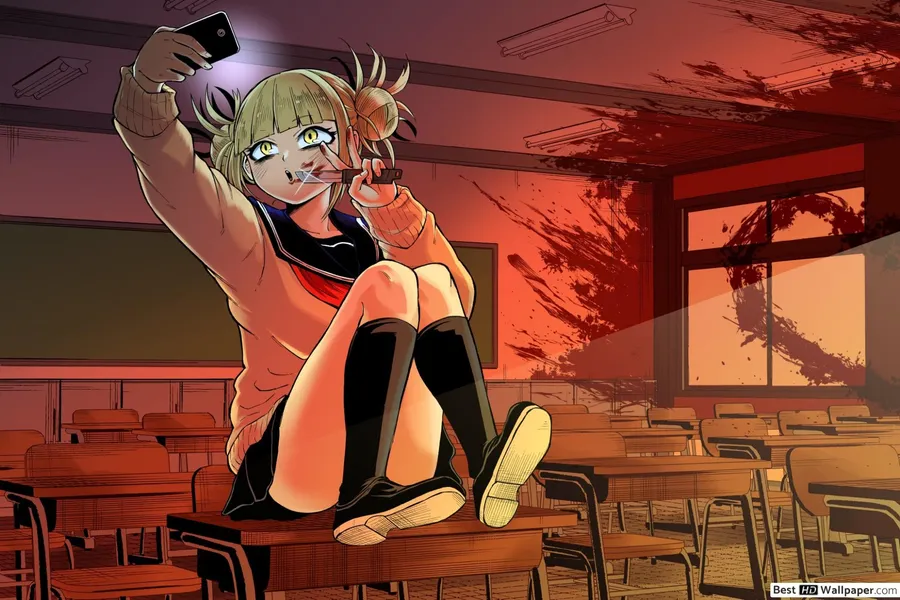 ![Caption:]()  Caption: "toga Himiko - The Deceptively Cheerful Villainess From My Hero Academia" Wallpaper
