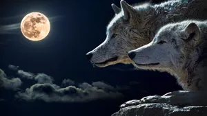 Image Two Adorable Wolves Snuggling On The Forest Floor Wallpaper