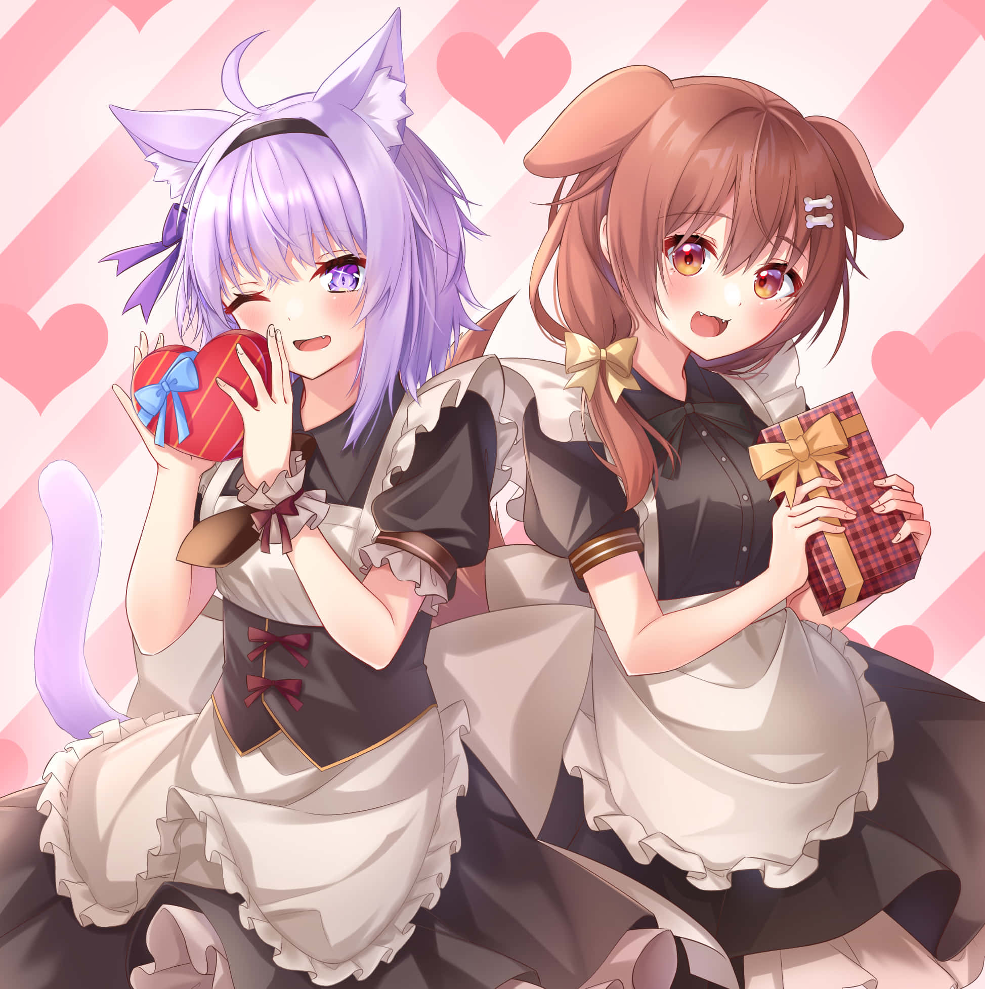 Inugami Korone And Nekomata Glancing Wallpaper -