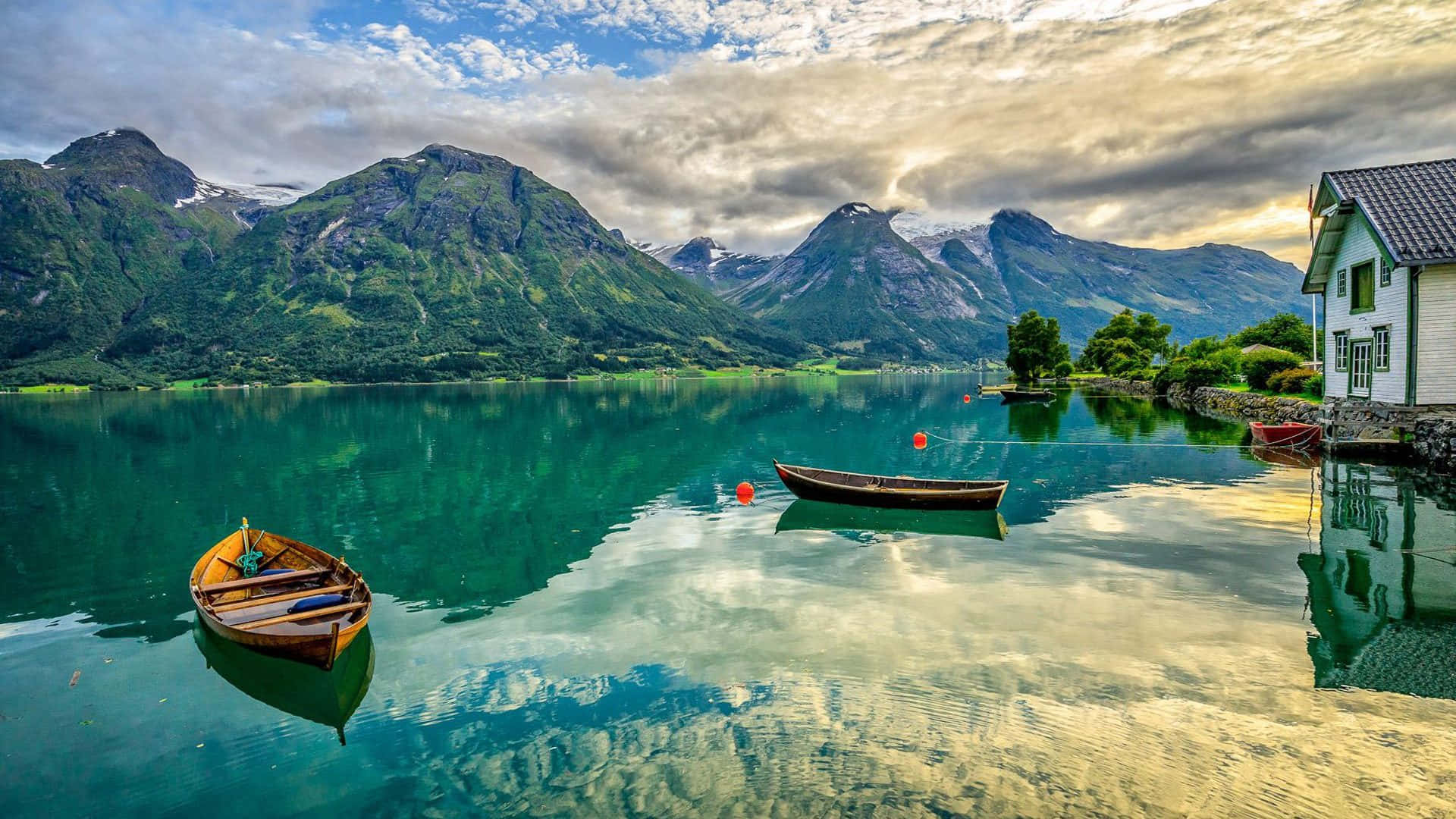 Tranquil Scenery Of Lily Pond Amidst Vibrant Hills Wallpaper -